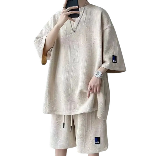 Men’s 3D Waffle Summer Tracksuit – Casual T-Shirt and Shorts Set