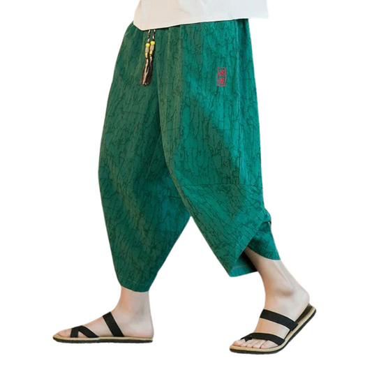 Men’s Japanese Kimono Shorts – Linen Wide-Leg Pants
