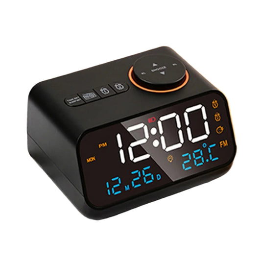 Modern FM Radio Alarm Clock – LED Bedside Clock with Temperature and Humidity Display