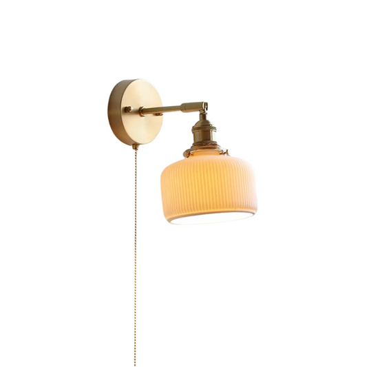 Nordic Ceramic Wall Light – LED Bedside Sconce with Pull Switch