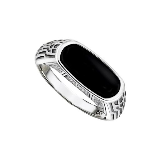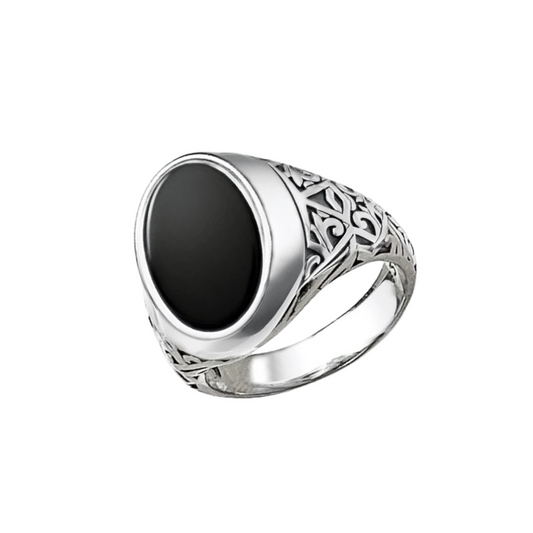 Vintage Style 925 Sterling Silver Black Oval Signet Ring