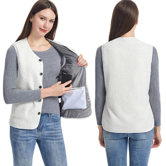 16-Zone USB Heated Vest – Teddy Velvet V-Neck Electric Warming Jacket