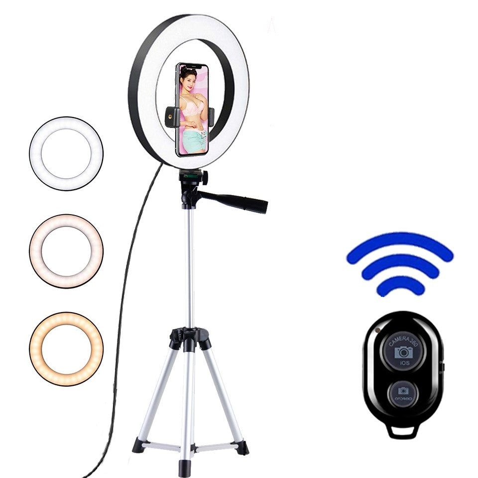 Led Selfie Ring Light Phone Bluetooth Remote Lamp Tripod Holder