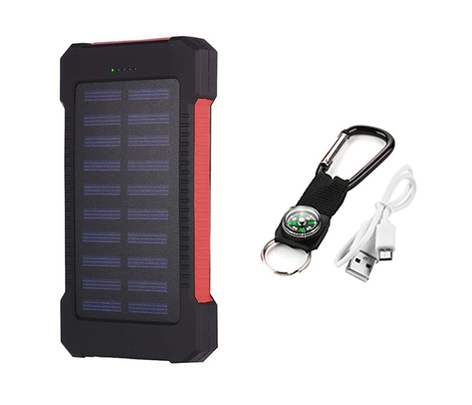 Made of durable and resistant material which protects it from rain, dirt, and shock. 30000mAh high capacity Li-polymer battery with a solar panel which avoids over-voltage, over the loan. etc. With a full charger, the solar power bank is able to charge iPhone 12pro Max about 6 times. 5W Fast wireless charging Solar panel has eco-friendly for emergency power and fits all outdoor activities. ex: camping, hiking, or fishing.