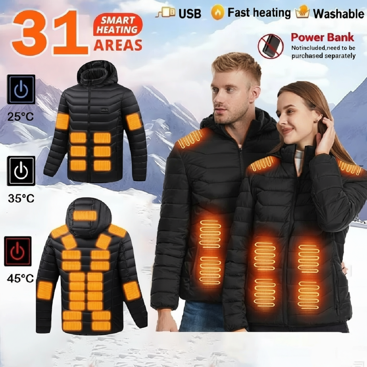 31-Zone Heated Jacket – USB Electric Thermal Winter Coat for Men & Women