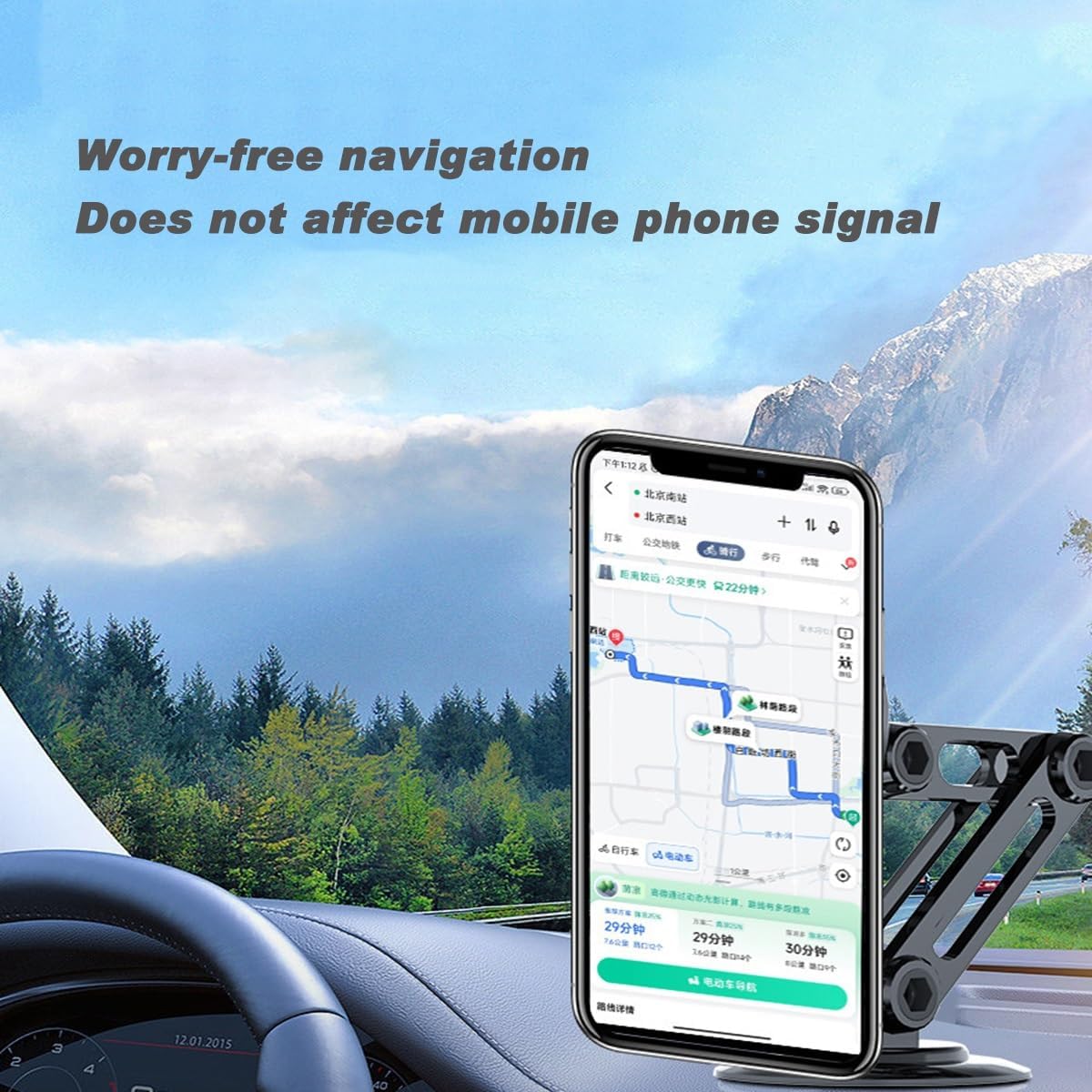 Engineered with N55 neodymium magnets, this mount ensures a strong, stable magnetic force without signal interference. Its MagSafe compatibility enables 1-second one-hand mounting, saving you from daily distractions and making it safer to drive. Unlike weak plastic clips, this phone holder remains stable on bumpy roads, tight turns, or even during sudden stops.