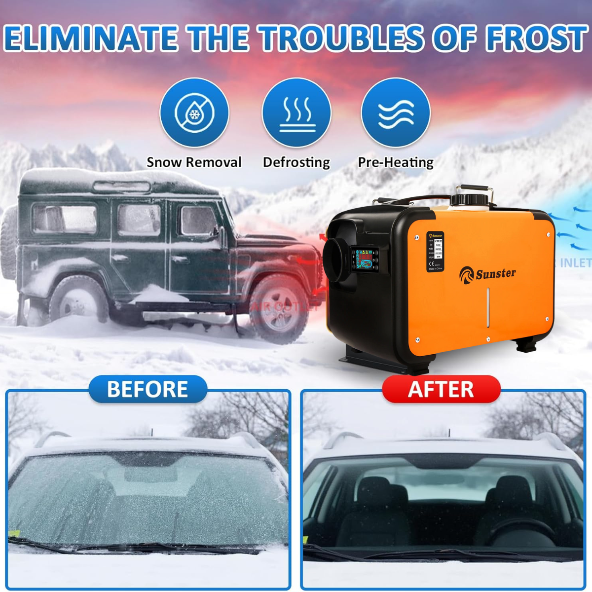 Featuring a digital LCD and a 98ft remote, this heater lets you control temperature, fan speed, and timers with a single touch—even from the comfort of your home. Adjust between 46°F and 95°F (8°C–35°C) or set the programmable timer to start warming your vehicle automatically before you leave. With dual voltage support (12V/24V) and intuitive controls, you’ll experience next-level convenience, energy savings, and comfort—all in one powerful unit.