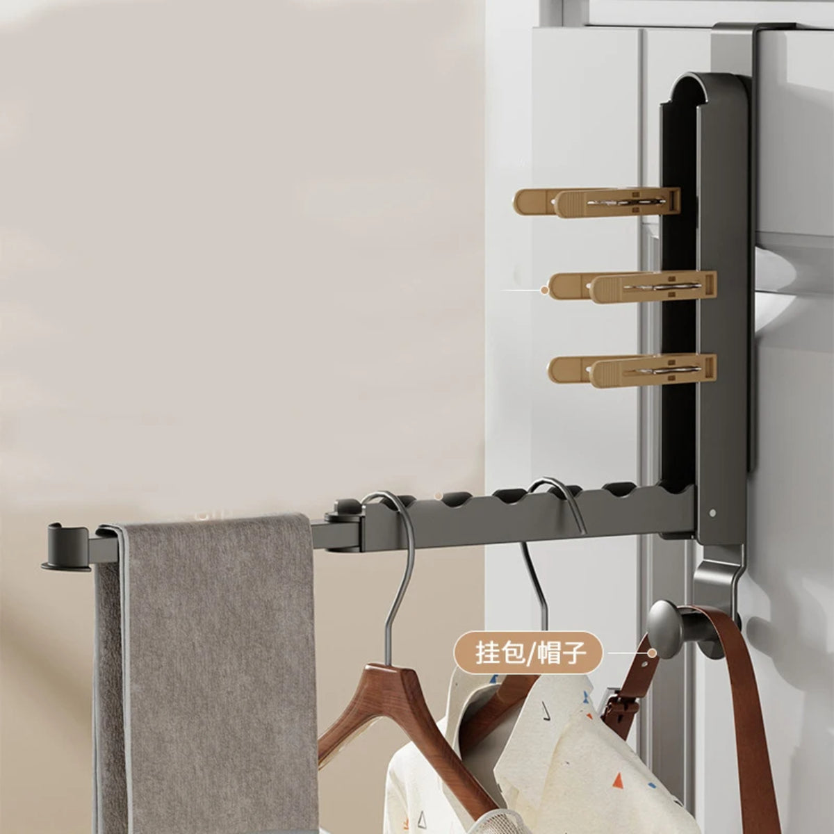 Aluminium Folding Door Rack – Telescopic Multi-Function Hook No-Drill Home Organiser