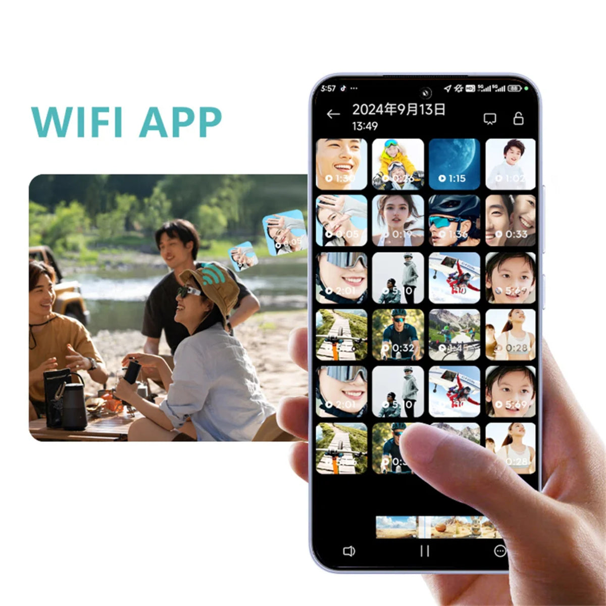 WiFi file transfer – Instantly share recordings to phone or cloud.