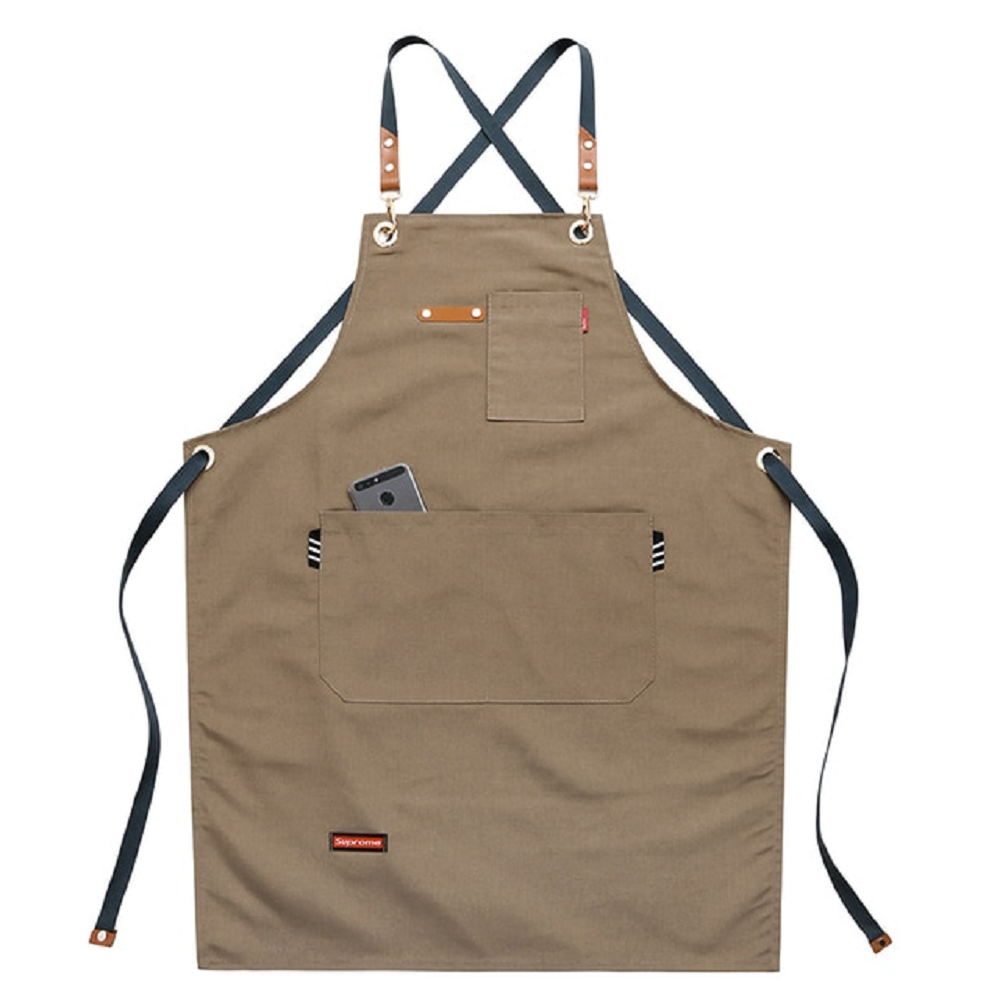 Our chef cross-back apron for women & men with tool pockets is constructed of 100% high-quality cotton canvas fabric, which is machine washable, waterproof, and drip-resistant. This chef apron weighs more than 13 ounces and is thicker and more wear-resistant than conventional aprons, protecting your garments from oil spills, stains, and grime.
