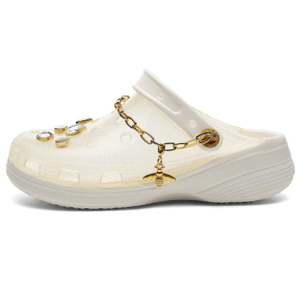 Introducing these beautiful woman sandals that will enhance your overall look and style. It is decorated with a golden chain and charms to give a gorgeous look.