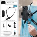 This neck holder is designed to accommodate all smartphones, including popular models like iPhone, Samsung, and Google Pixel. It's also compatible with action cameras such as Go Pro, thanks to the extra 1/4 adapter. The phone clip includes a cold shoe and 1/4 adapter interface for attaching additional accessories like microphones or LED lights, making it perfect for content creators who need a versatile and reliable tool. Whether you're documenting your adventures, recording workouts, or simply staying connected, this holder is the ultimate accessory for modern, on-the-go lifestyles. Order yours today and transform the way you use your phone!