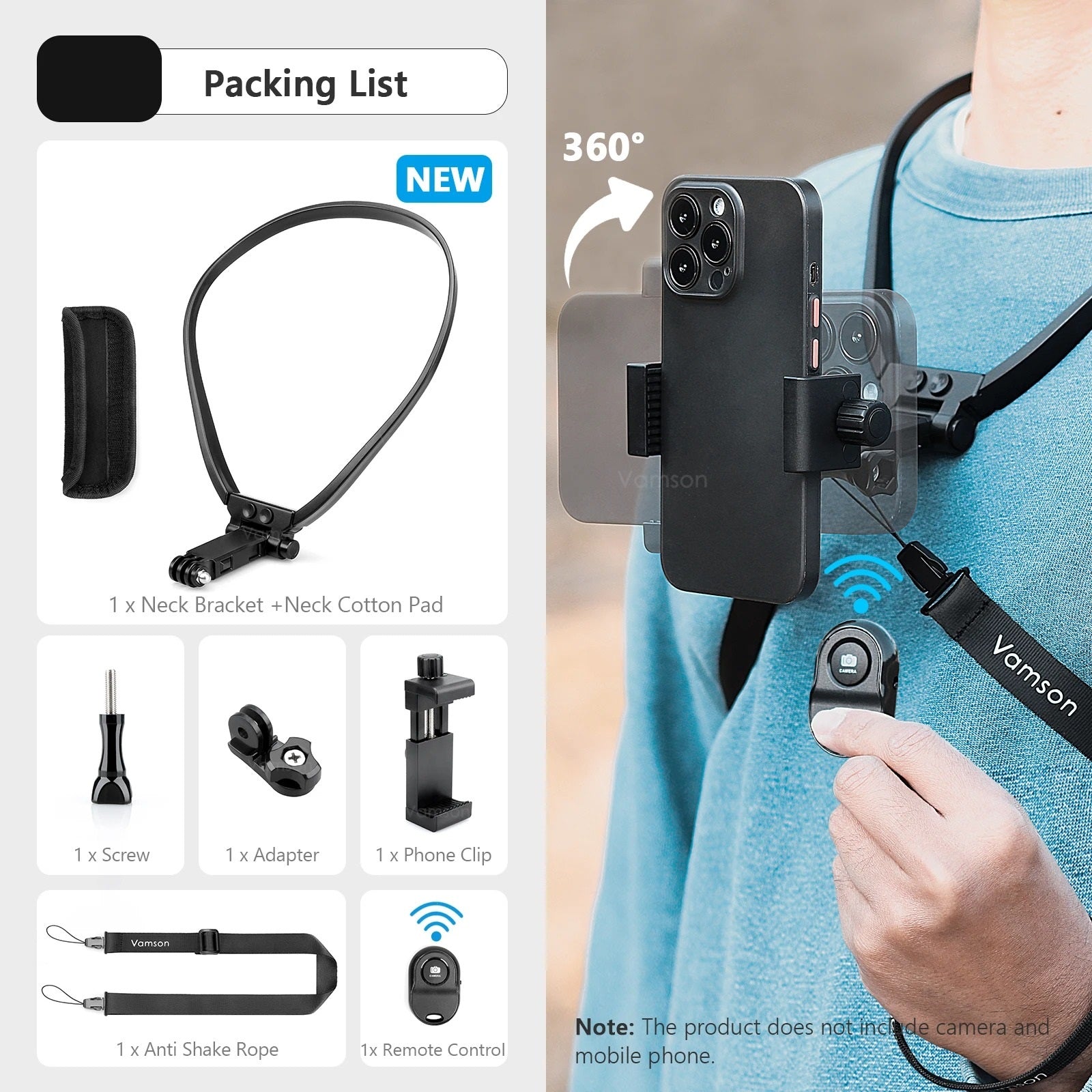 Capturing smooth, professional-quality videos while on the move can be challenging, but not with our neck holder. Equipped with an anti-shake rope, this holder significantly reduces jitter, providing stable and clear footage even during strenuous activities. Perfect for outdoor adventures or fitness enthusiasts, this feature ensures that your first-person perspective videos are of the highest quality, no matter the circumstances.