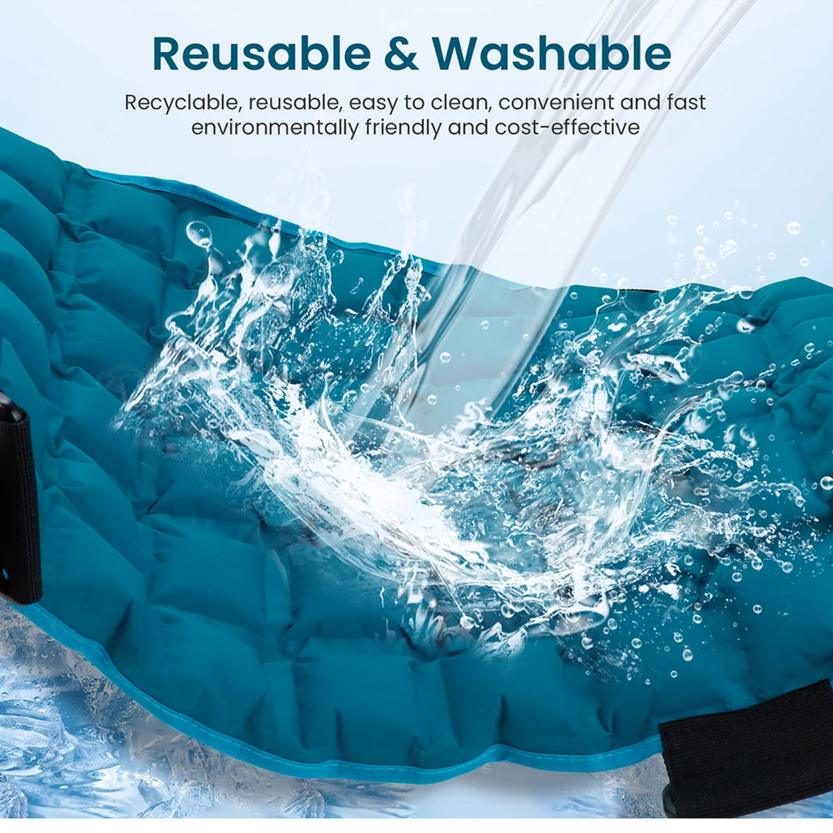 The lightweight design easily folds and conforms to tricky areas like the knees, elbows, lower back, or shoulders. Bonus straps and hoop designs allow for hands-free application, perfect for at-home recovery or outdoor activities. Flexible even when frozen, it hugs your body for deeper, more effective relief.