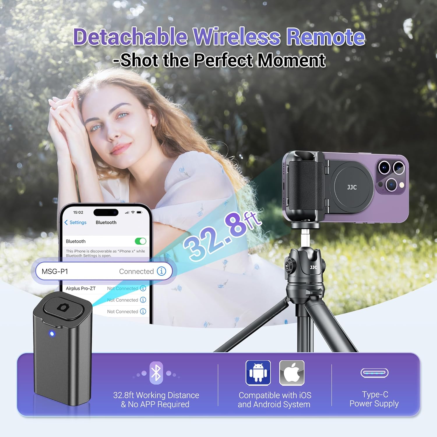 The Magnetic Snap grip Hand Grip comes with a detachable wireless remote, allowing for hands-free control up to 32.8 feet away. This feature is perfect for vlogs, selfies, and group photos. The remote pairs instantly with both iOS and Android smartphones, requiring no additional app. With a built-in rechargeable battery and included Type-C cable, you can easily keep the remote charged and ready for action. Capture stunning photos and videos with ease and convenience.
