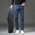 Men’s Winter Fleece Jeans – Slim Straight Warm Elastic Denim Pants