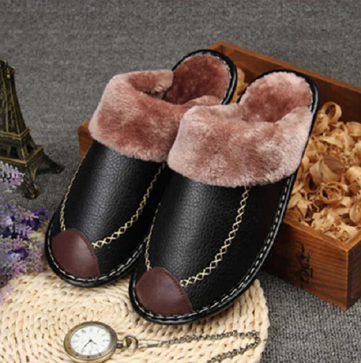 Men's Winter Warm Thick Plus Velvet Leather Slippers are the perfect solution to unwind and rejuvenate. Crafted with soft faux fur and eco-friendly plush fleece, these slippers deliver unparalleled warmth while keeping your feet dry and cozy. Whether you're relaxing indoors or stepping outside, their snug embrace ensures that every step feels like a retreat into luxury.