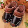 Men's Winter Warm Thick Plus Velvet Leather Slippers