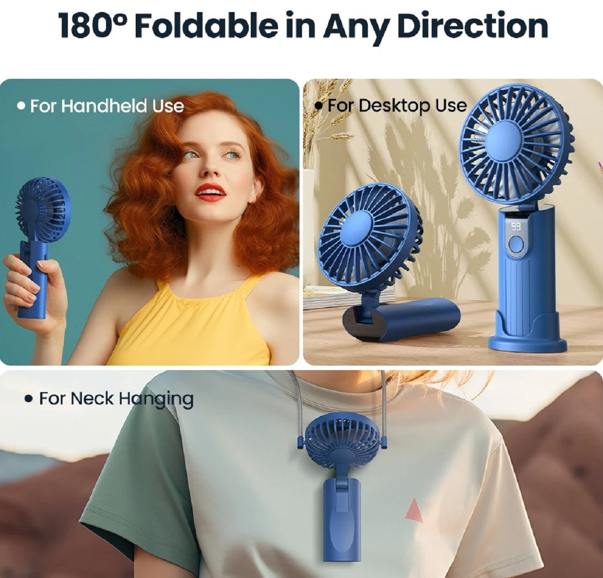 Weighing just 150g and measuring only 195x91x35mm, this pocket-sized fan is effortlessly portable. Use it as a handheld fan, a 180° adjustable desk fan, or a lanyard neck fan. With a clear LCD screen and one-touch control, it's designed for simplicity, making it suitable for kids, elderly users, and everyone in between.