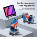 Compatible with smartphones and tablets up to 10.5 inches, including models with thick protective cases, this phone stand adapts to your setup with ease. Its adjustable V-shaped angle ensures the perfect viewing experience without blocking the screen. Plus, the foldable pocket-size design makes it incredibly easy to carry — slip it into your bag, purse, or even your jeans pocket, and take it anywhere.