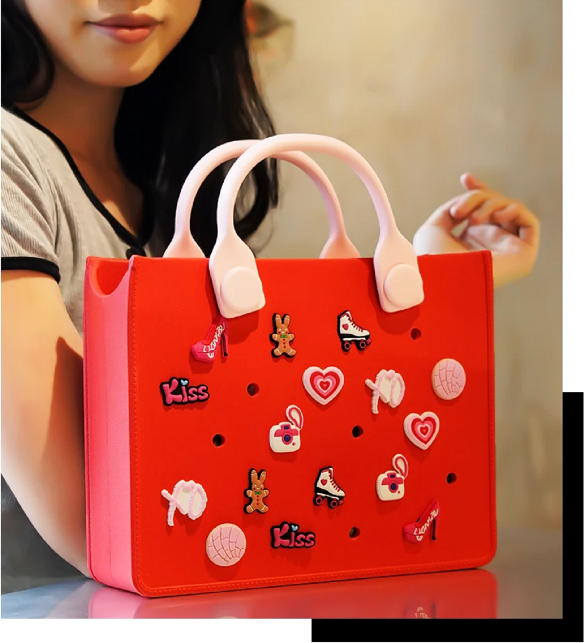 The New Eva Leather Tote Bag stands out with its premium EVA leather material, known for its durability and lightweight properties. This material is not only strong but also fast-drying and waterproof, making it the perfect companion for all your outdoor adventures. With a non-slip textured bottom and soft shoulder straps, this tote ensures comfort and ease of use. The fashionable color scheme, combined with two personalized accessories, adds a unique touch, making you the center of attention wherever you go.