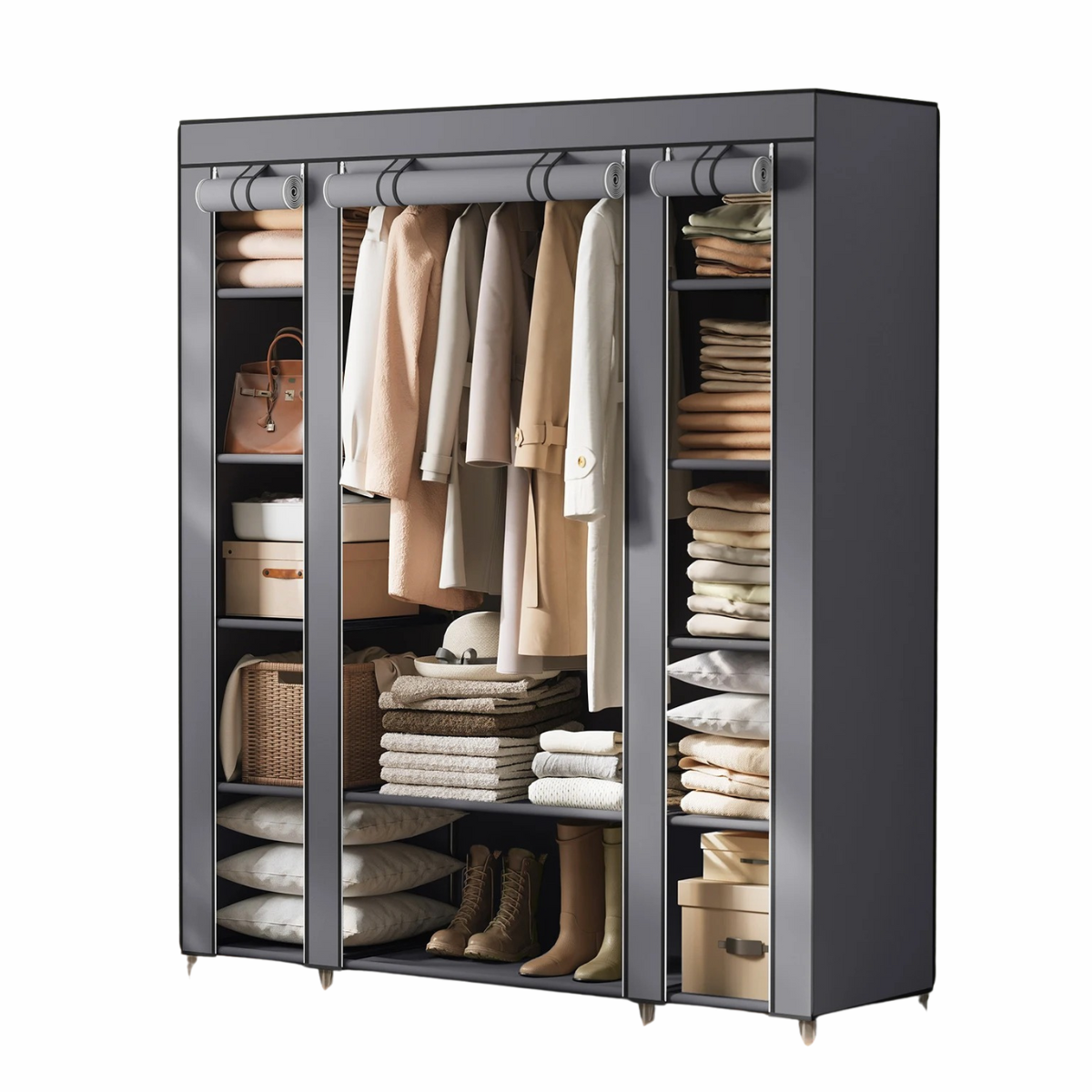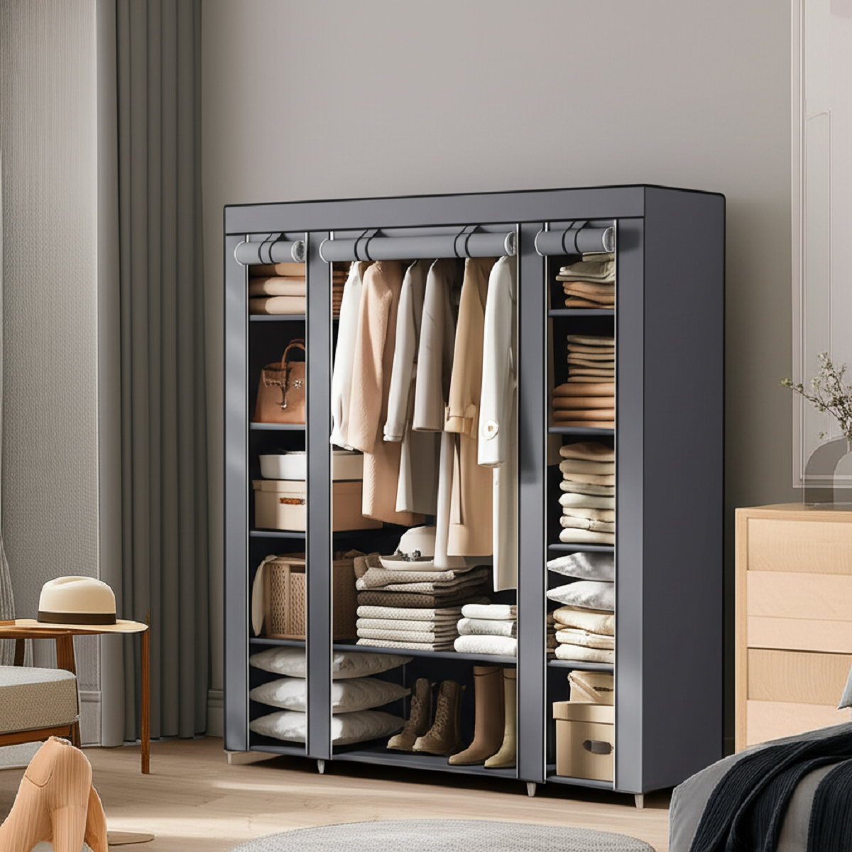 Portable Closet Wardrobe – Clothes Rail with Fabric Cover and Storage