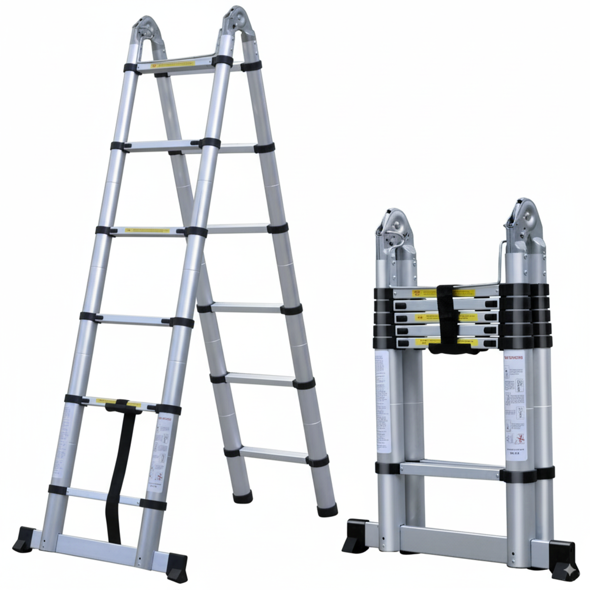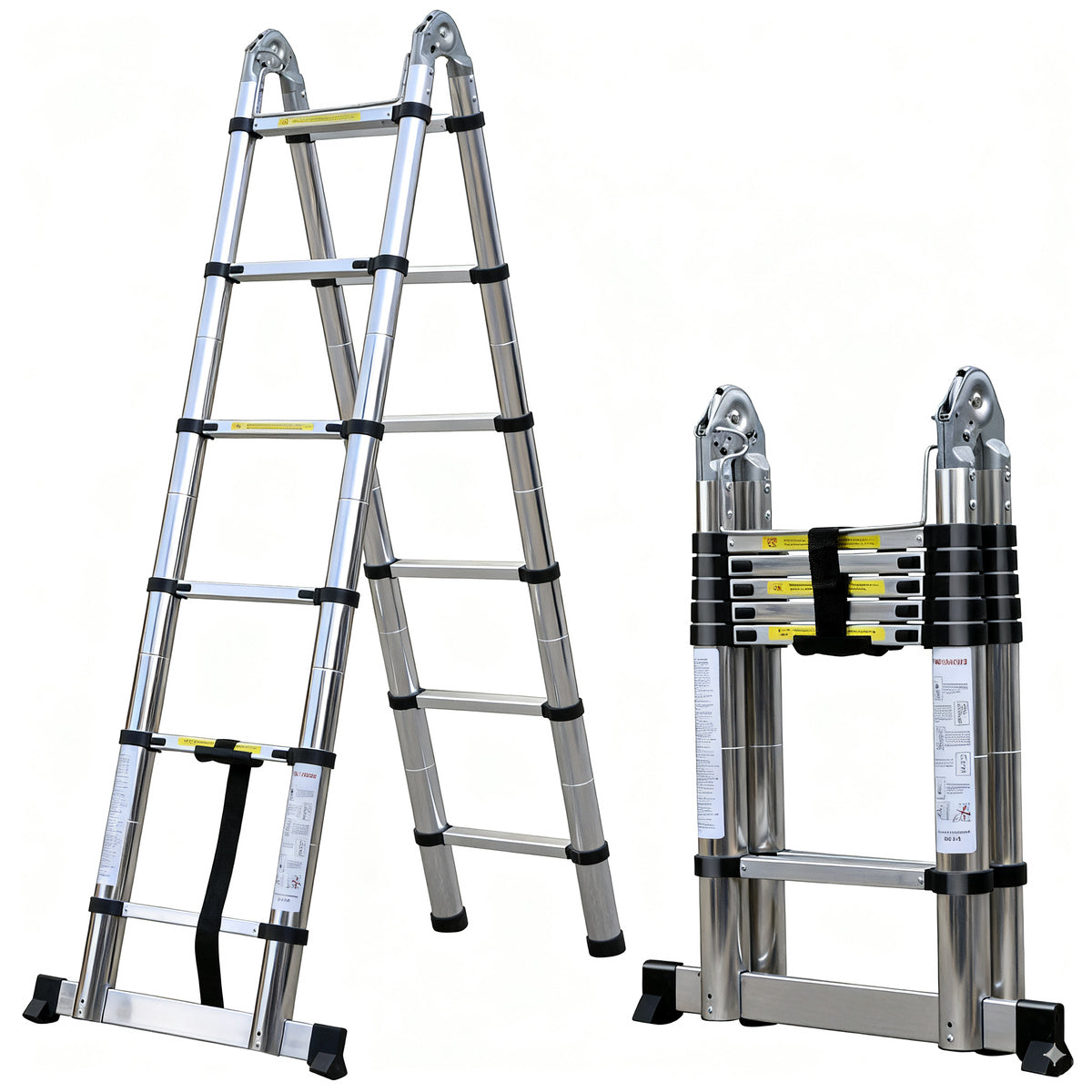 Telescopic Ladder – 3.8 m/5 m A-Frame Aluminium Non-Slip 150 kg