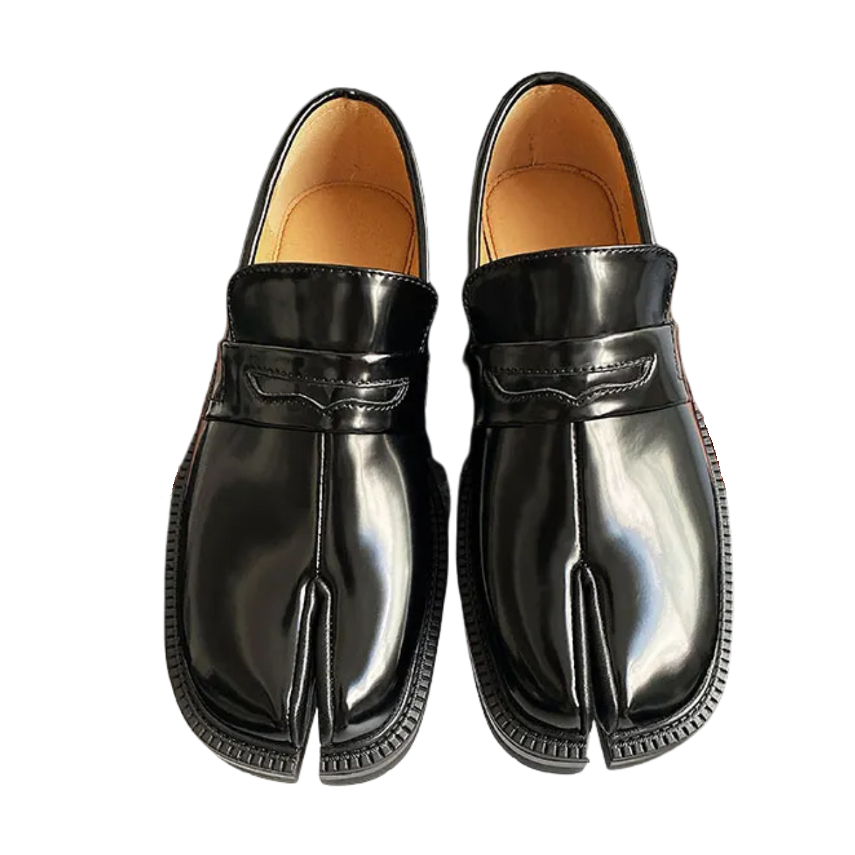 Inspired by the iconic Japanese tabi shoe, this loafer delivers a retro yet contemporary look that instantly sets you apart. Whether you're strolling through the city or heading to a creative workspace, these shoes effortlessly complement minimalist, vintage, or high-street fashion. Choose between matte or patent genuine leather for a finish that suits your style.
