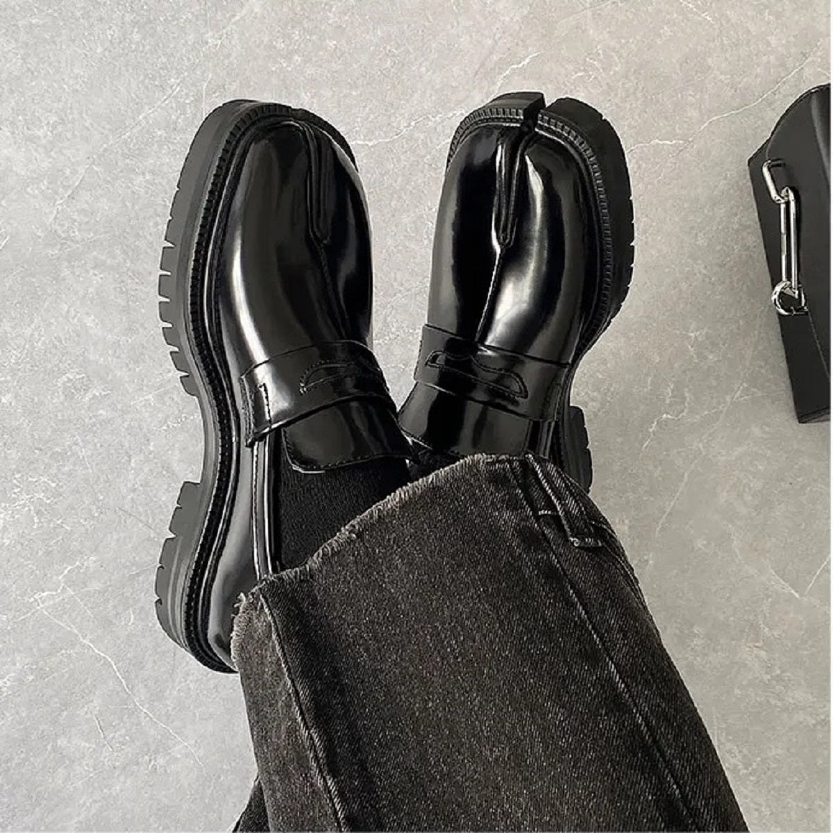 Split-Toe Tabi Loafers – Thick Sole Leather Shoes