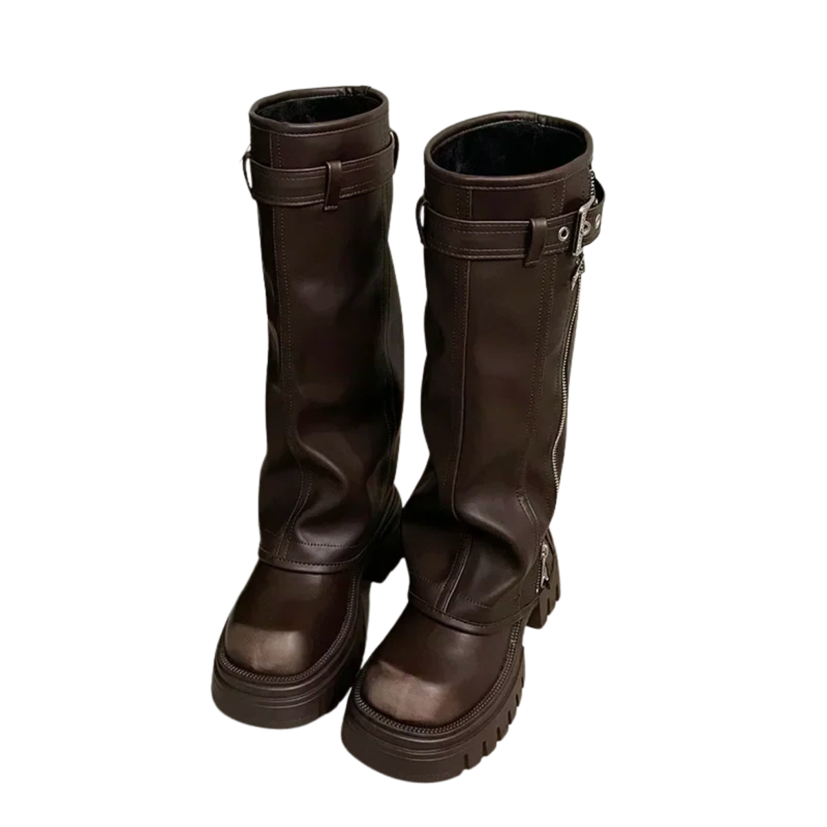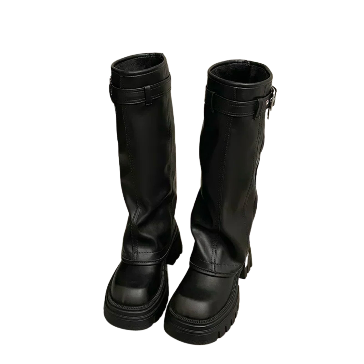 Crafted from premium PU faux leather, these knee-high biker boots provide a luxuriously soft feel while ensuring long-lasting wear. The chunky lug sole offers exceptional traction and stability, perfect for navigating slick winter streets. The square-toe design elevates your style and provides ample room for a relaxed, comfortable fit.