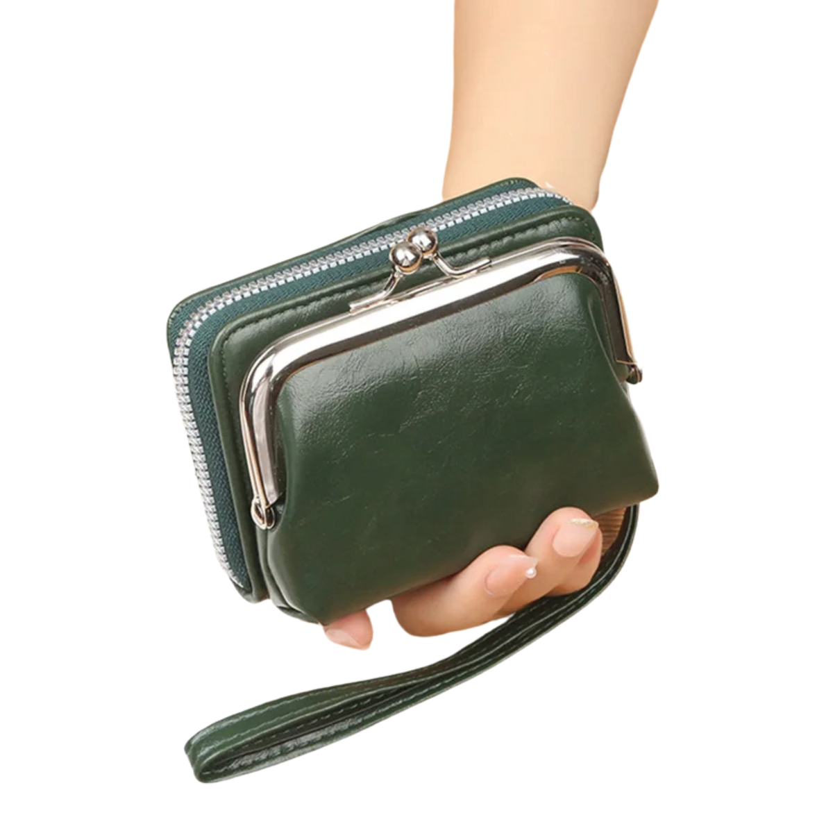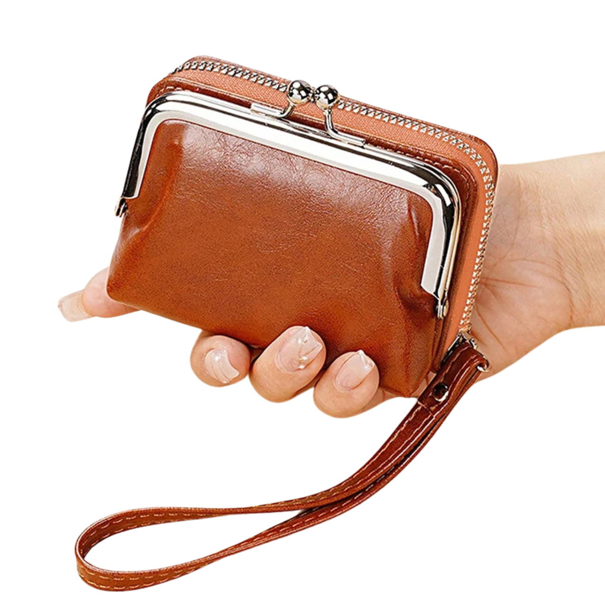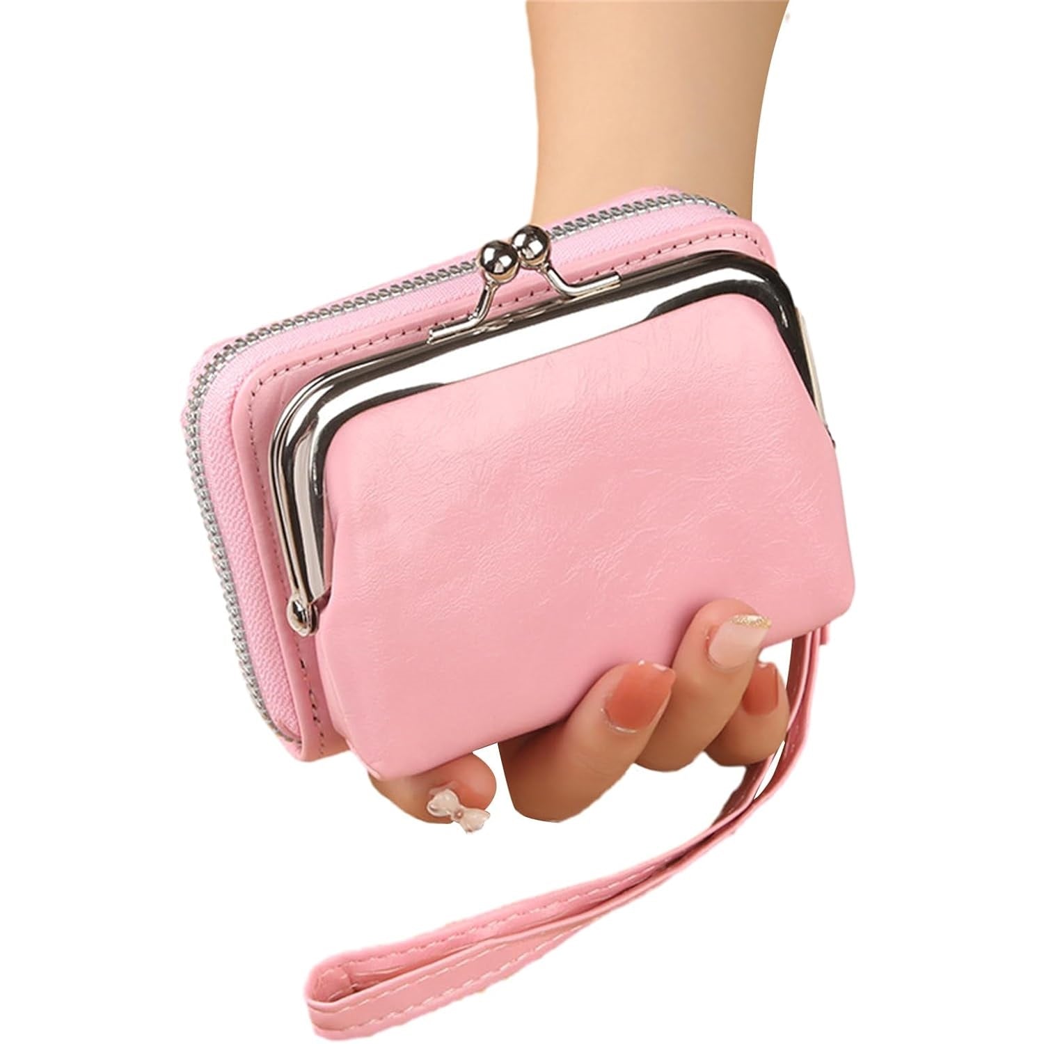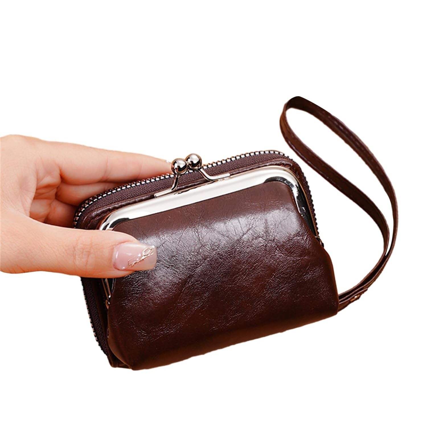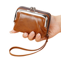 Women's Wallet Wrist Vintage Coin Purse With Zipper and Kiss Lock