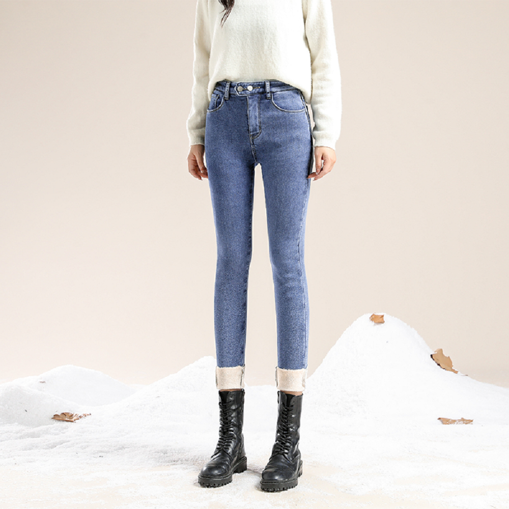 Super thick cashmere jeans go with everything. Can be used as outer pants with sweaters, blouses, and so on, or as leggings with skirts. Slim women's warm jeggings make your legs appear slimmer and keep you warm in the fall and winter, these wardrobe essential jeggings are for females. Wearing such slim jeans is hip and fashionable; you won't be sorry if you get them.